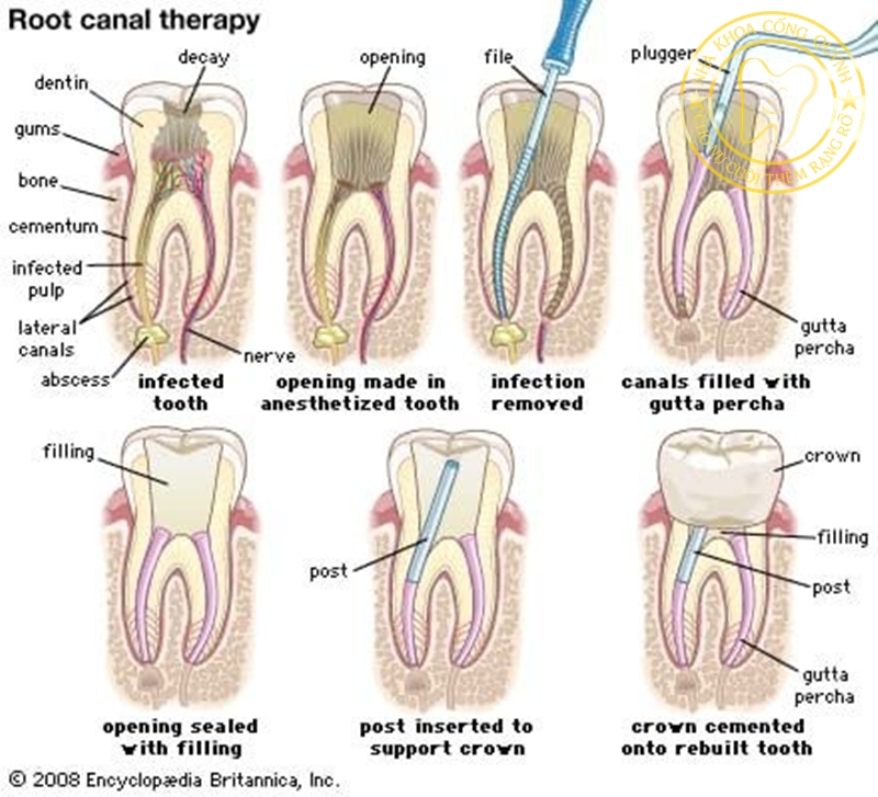 Ống tủy được trám bằng vật liệu chuyên biệt nhằm ngăn vi khuẩn xâm nhập trở lại.