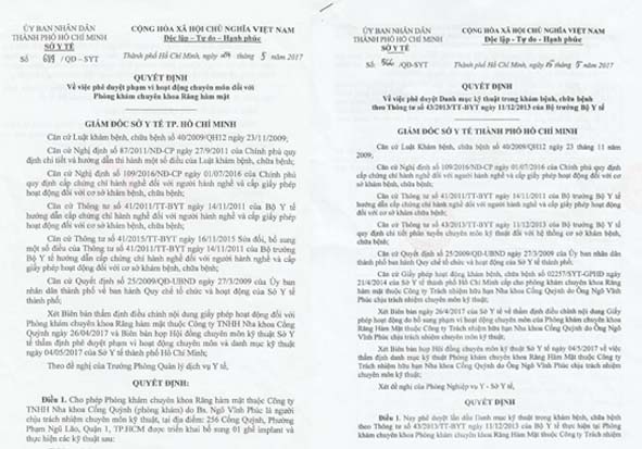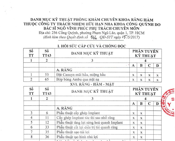 Nha Khoa Cống Quỳnh là một trong những nha khoa đầu tiên được Sở Y Tế TP.HCM cấp phép cấy ghép implant cũng như chỉnh hình răng miệng theo quyết định số 689/QĐ-SYT.