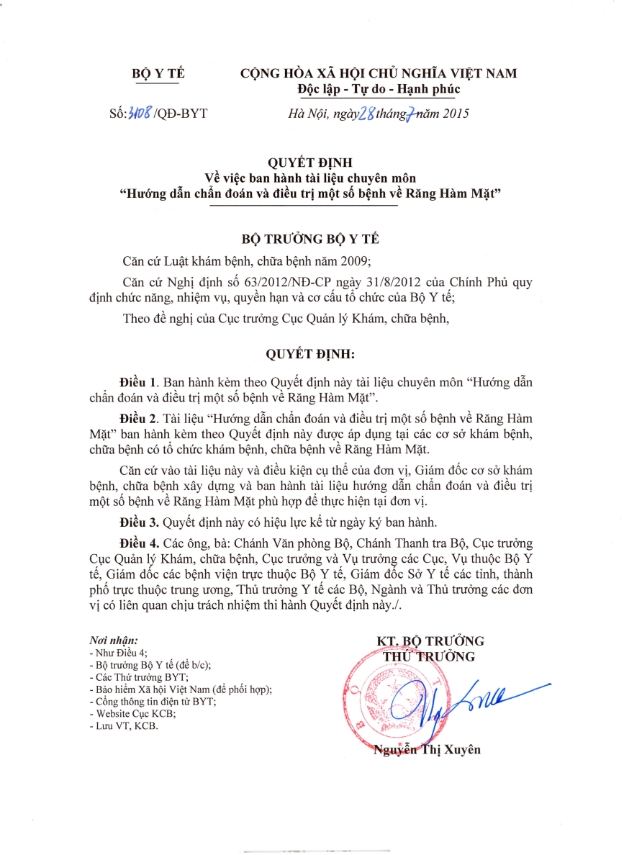 Nha Khoa Cống Quỳnh thực hiện điều trị răng miệng theo phác đồ chuẩn Bộ Y Tế và Danh mục kỹ thuật trong khám chữa bệnh theo quyết định 566/QĐ-SYT