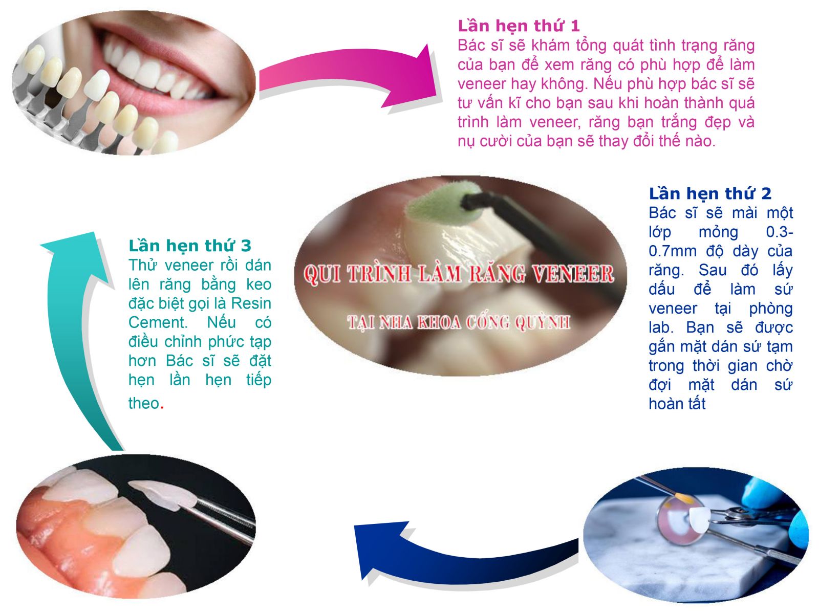 Quy trình thường diễn ra trong 2–3 lần hẹn, kéo dài từ 3–7 ngày tùy trường hợp. Sau khi hoàn tất, bác sĩ sẽ hướng dẫn vệ sinh răng miệng và chăm sóc răng Veneer đúng cách. Khách hàng nên tái khám định kỳ mỗi 6 tháng – 1 năm để kiểm tra và duy trì kết quả lâu dài.