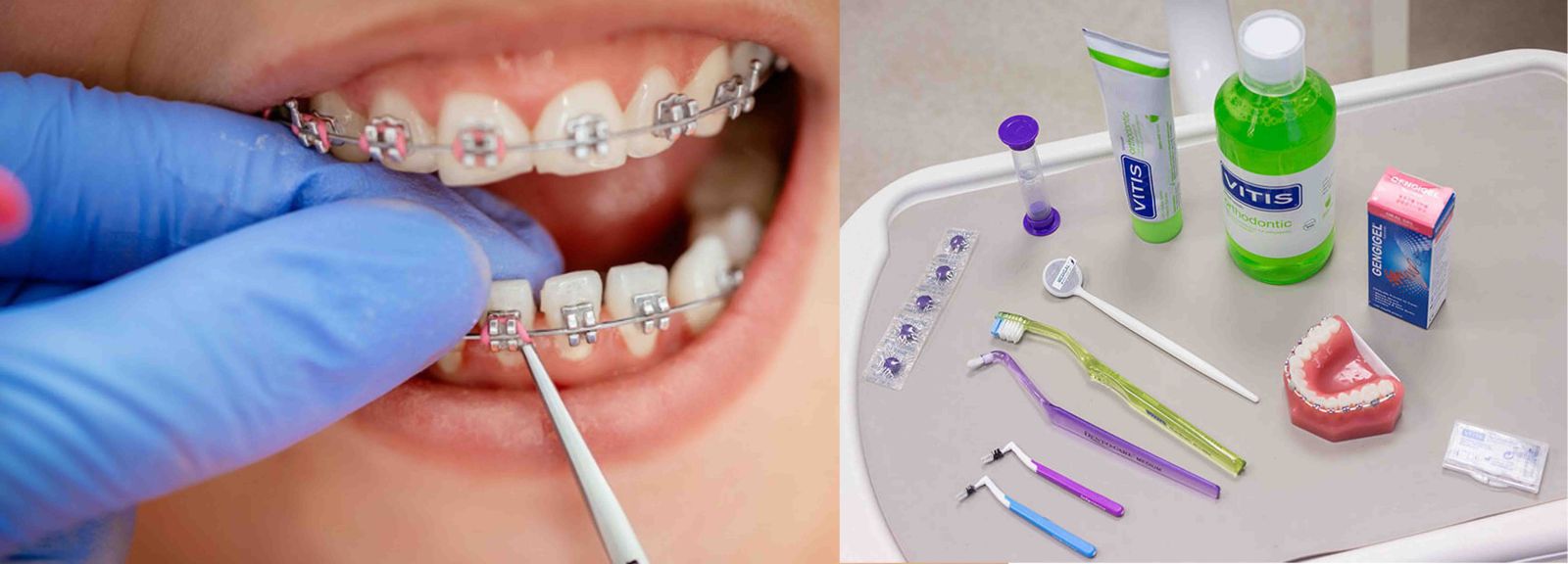 Lấy đủ vật dụng hỗ trợ: sáp nha khoa, bàn chải kẽ, chỉ nha khoa, thun liên hàm…