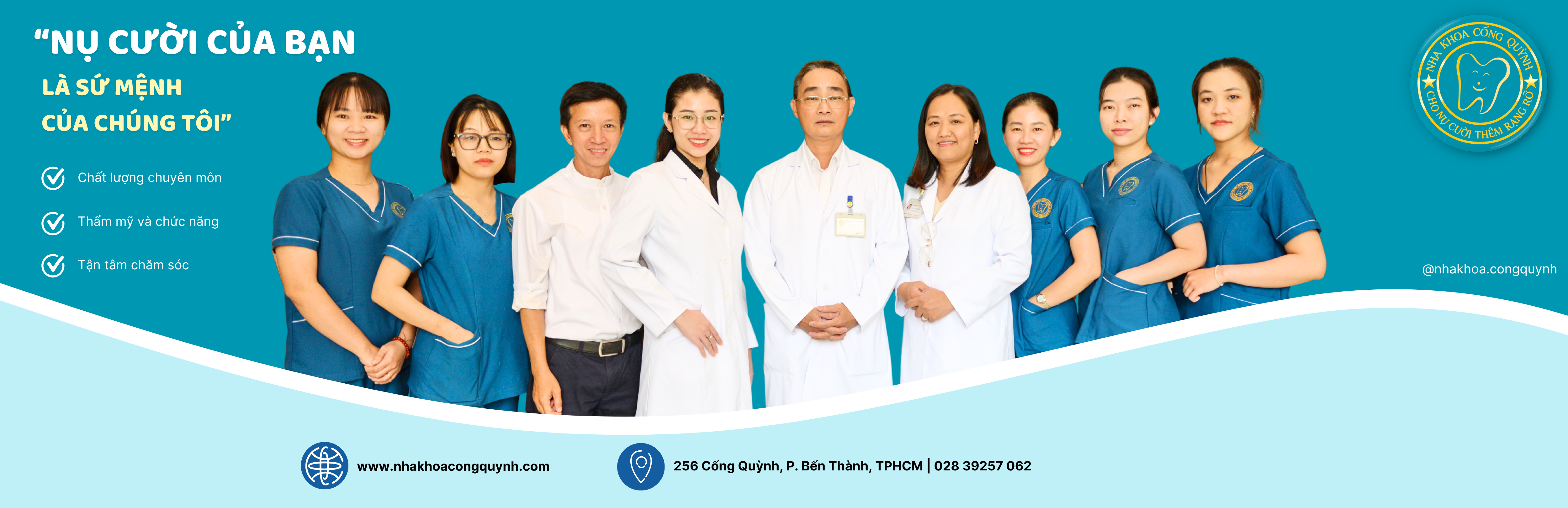 Nha Khoa Cống Quỳnh là nơi hội tụ đội ngũ bác sĩ chuyên khoa răng hàm mặt giàu kinh nghiệm, đến từ các bệnh viện lớn như Bệnh viện Răng Hàm Mặt TP.HCM, Bệnh viện Răng Hàm Mặt Trung Ương và Khoa Răng Hàm Mặt – Đại học Y Dược TP.HCM. Chúng tôi cam kết mang đến chất lượng điều trị nha khoa chuyên sâu, hiệu quả và an toàn.